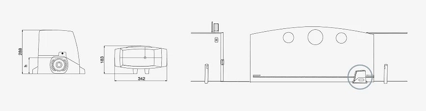 AC12 motor je kompatibilan sa većinom kliznih kapija do 1200 kg. Zato se lako uklapa u različite sisteme automatizacije.